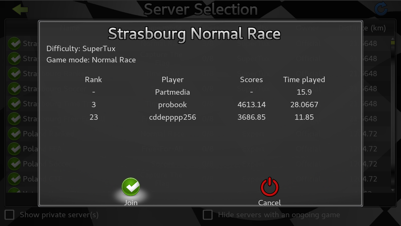 - You can either run a server on your own computer, all handled by SuperTuxKart, fire up a stand-alone server, or connect to servers already running.